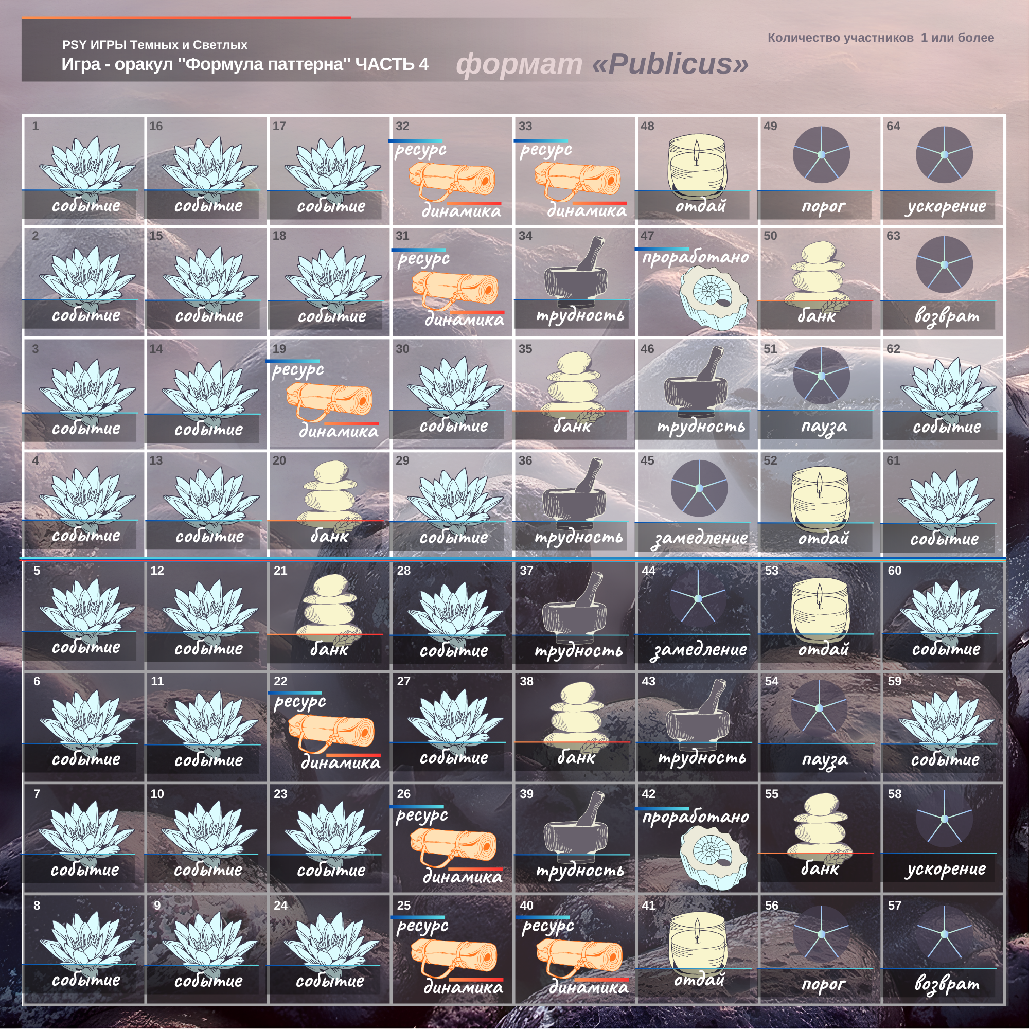 Психологическая игра - оракул, направлена на выявление автоматических реакций и поведения, на их преобразование и трансформацию (вход по паролю из правил игры).